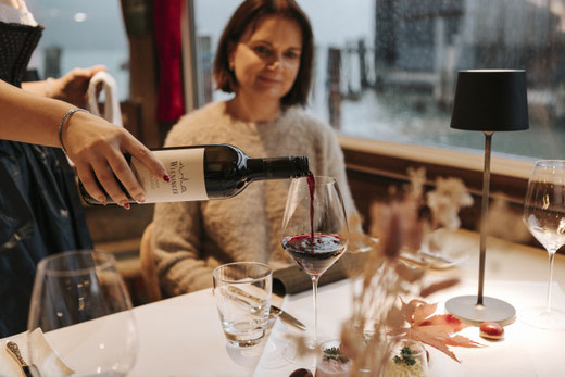 Auf dem eleganten „Klimt-Mahler Schiff“ erwartet die Gäste ein exklusives 4-Gänge-Menü rund um heimisches Wild, begleitet von erlesenen Weinen und den musikalischen Klängen von Anna Maria Danter.